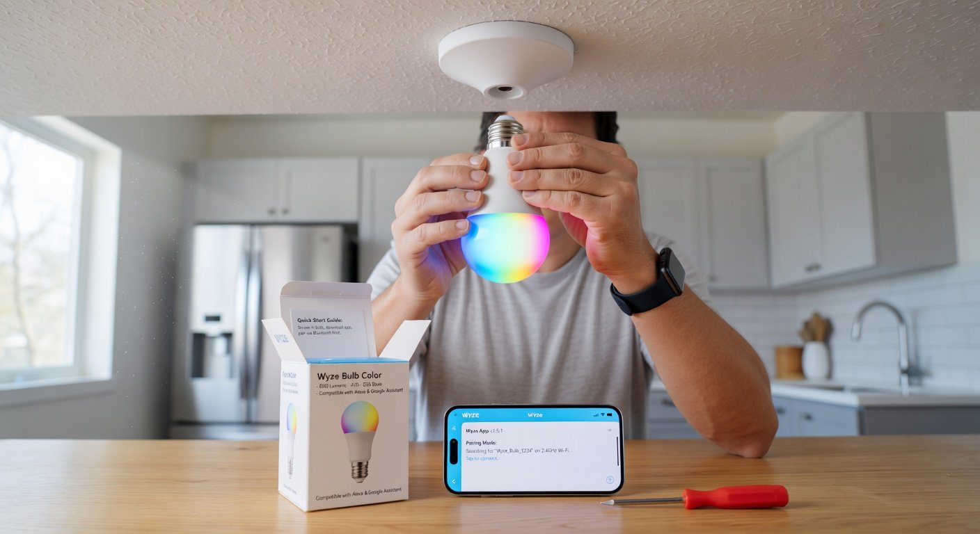 - Download the app (e.g., Wyze or Philips Hue equivalent) and connect via Wi-Fi/Bluetooth.